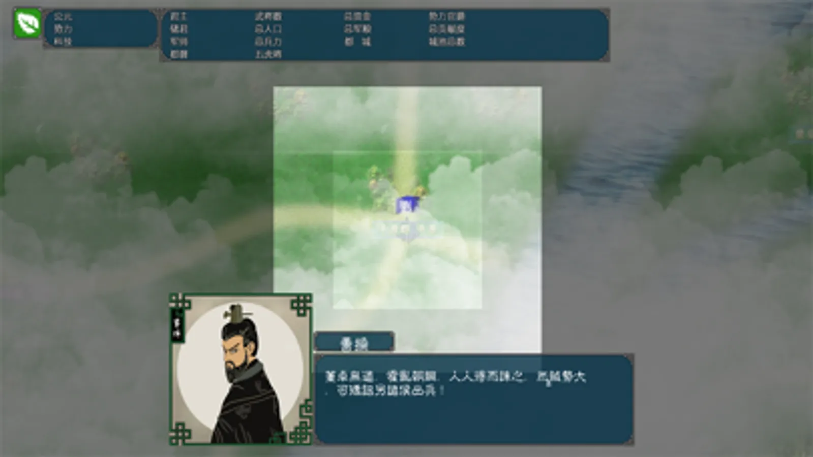地圖有戰爭迷霧,你只能看到處于你視野中的單位,而視野也分為高視野,中視野等等,你可以通過偵查或者情報策略驅散某一塊地區的戰爭迷霧,除了單挑外,所有的戰斗都在大地圖上發生,因此,游戲中基本上沒有載入時間需要等待。