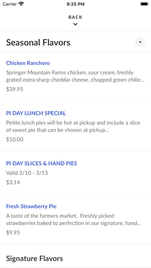 With the Southern Baked Pie Company mobile app, ordering food has never been easier. Whether you're looking for a quick snack or a full meal, we've got you covered. Just browse our easy-to-use menu, customize it how you'd like, place your order using our secure payment system, and sit back! A push notification will alert you when your order will be ready.