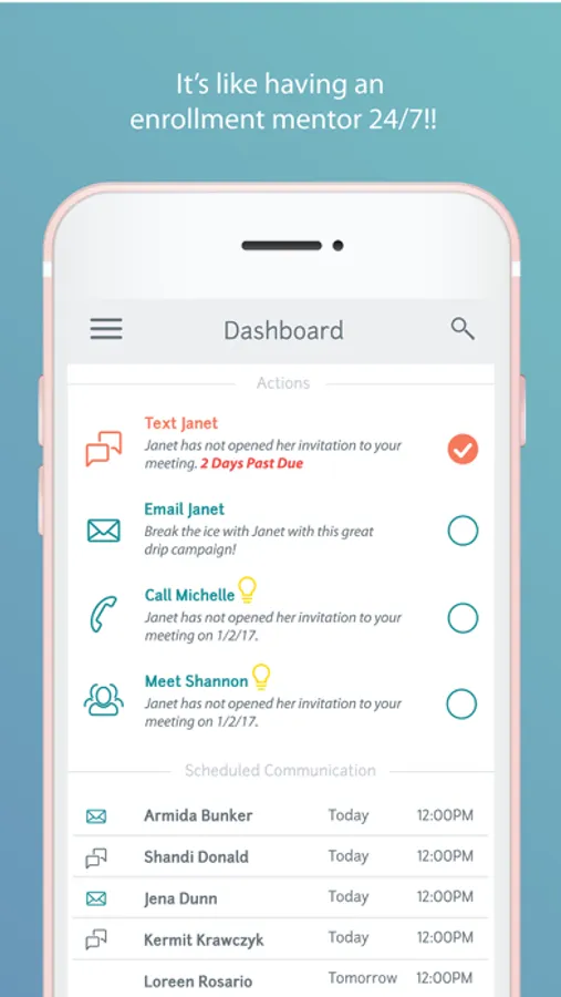 Send automated emails and text messages from our library of templates geared specifically towards your prospects in your enrollment pipeline. Keep track of your prospects to boost your enrollments!