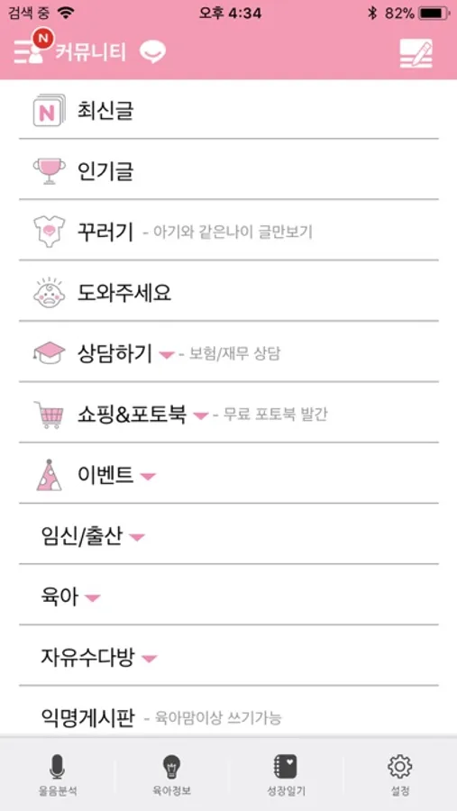 임신/출산/육아게시판에서 폭풍 질문과 육아 노하우를 맘껏 자유롭게 공유하며 수다방/익명게시판에서 쏠쏠한 일상의 재미와 답답한 일상의 스트레스를 날려보내시면 초보맘에서 어느덧 육아 달인 맘으로 변신!