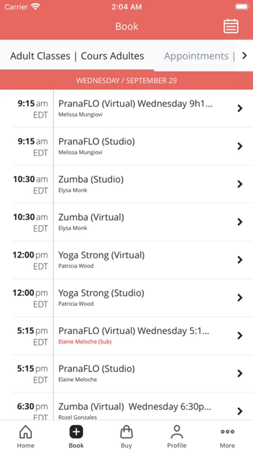 • Sign up for classes like yoga, zumba, pilates or sculpt