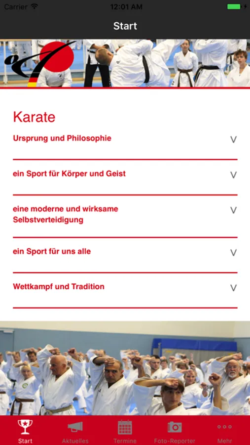 Der Deutsche Karate Verband e.V. gibts jetzt auch als App. Damit sind Sie immer auf dem laufendem. Bilder, Neuigkeiten, Termine, Telefonnummern - alles total einfach und praktisch in einer App. Als Karate-Fan ein absolutes Muss.