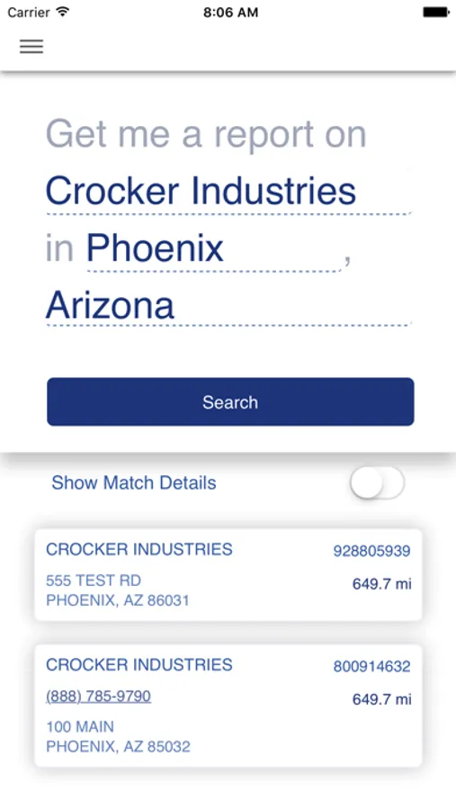 — Easily locate prospects via the mobile app by entering in the business name, city and state. Sales reps can select from a list of businesses which matched their search criteria.