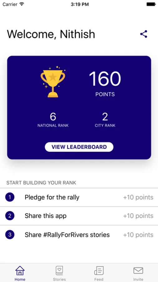 To create awareness and momentum about this national issue amongst all sections of society and government, Sadhguru has conceived the “Rally for Rivers” awareness campaign. Pledge your support to save India’s rivers! Get involved in different activities and claim points for each one you complete successfully. Spread awareness about the project in a number of ways, such as sharing your own stories, inviting your friends to the app and giving a missed call to +91 80009 80009.