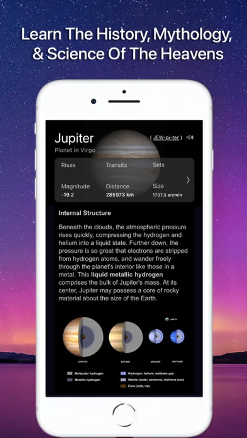 + Learn about the history, mythology, and science of the heavens! Browse from hundreds of object descriptions, astronomical photographs, and NASA spacecraft images in SkySafari. Explore tons of NASA Space Missions!