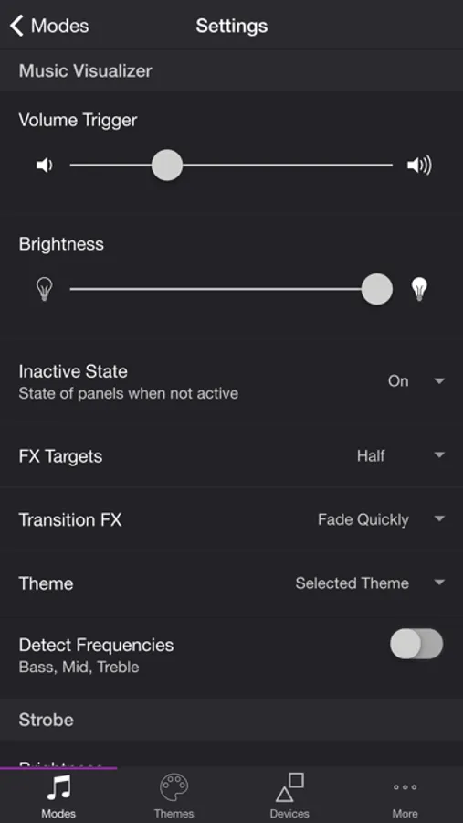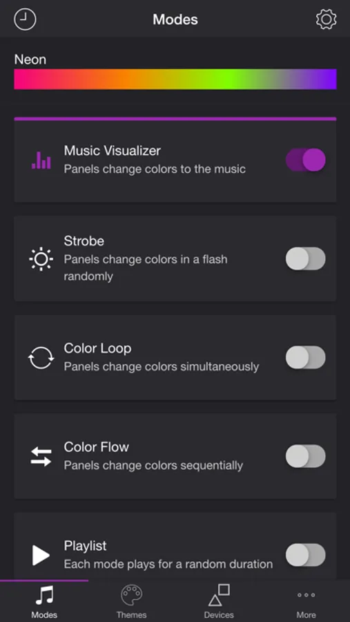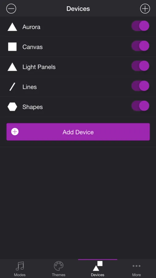 Add one or more of your Nanoleaf devices on the Devices tab. Toggle-on the devices you want to use for your light show. To edit a device in the list, swipe the item to the left and tap the pencil icon.