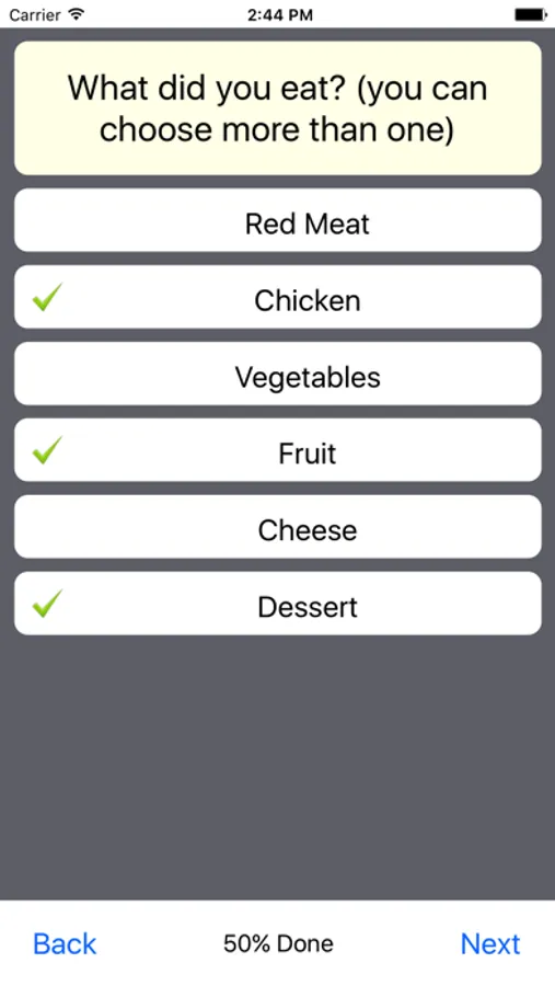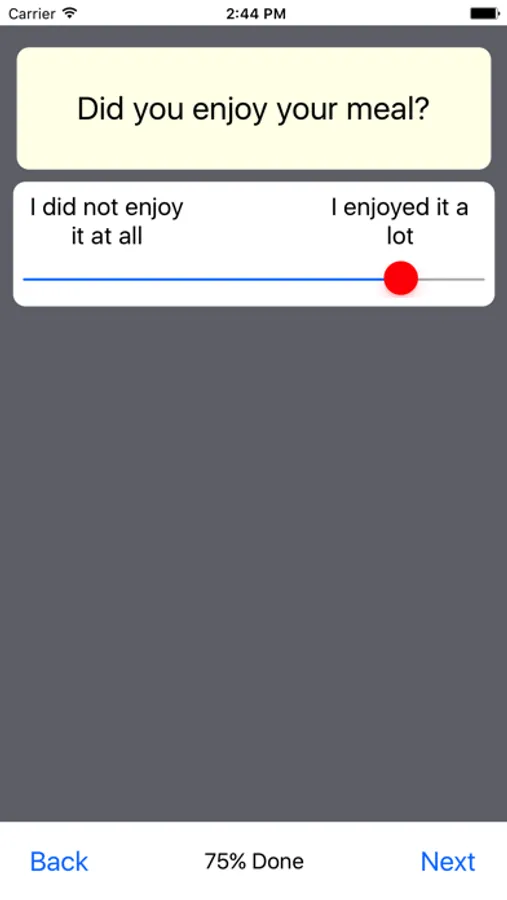 - Currently there are 4 question types; list, checkbox, slider and free text.