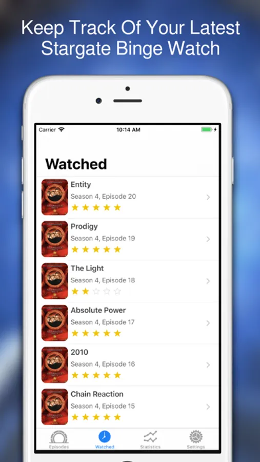 Note: This app does not allow you to watch Stargate, its simply to keep track of your latest re-watch.