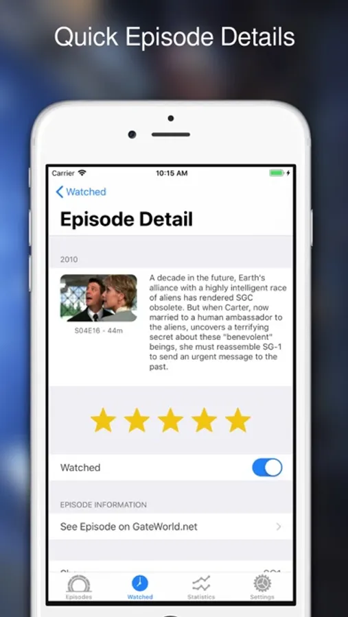 Over 20 years later Stargate is still the best SciFi show. With over 300 episodes, keeping your place can be tricky, but with Gate Guide you’ll never skip an episode or lose your place.