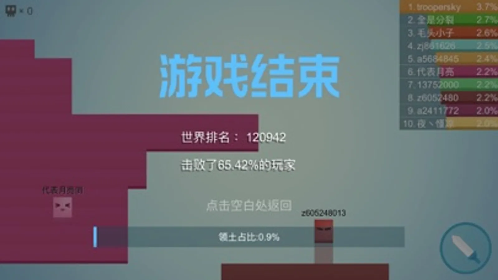 最古老的圈地游戏,在加入英雄概念和对战模式后焕发出了新的生命力!玩家需要控制英雄在地图上前进,走出封闭的路径将会获得一个新的地盘。同时,还要面对其他玩家的地盘争夺和攻击。一旦丢失所有地盘或者被击杀游戏结束。善加利用你的技能,占领整个地图吧!