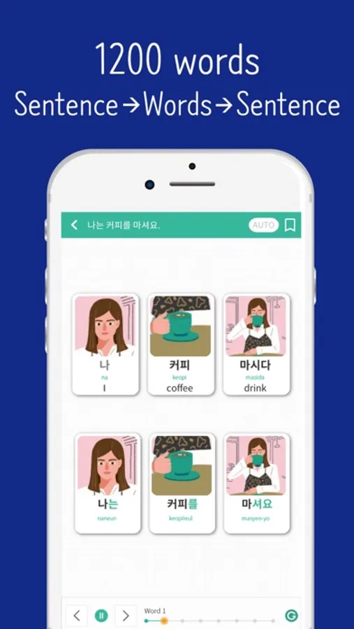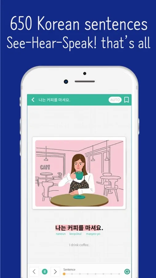 There are 5 characters within the 650 sentences that share stories of everyday life. These characters create relationships of friendship and love between each other. These characters will foster your desire to keep on learning Korean.