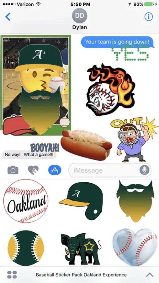 Simply tap to send Oakland fandom in a message, adjust their size, or peel and place them on top of bubbles, other stickers, and your baseball photos or otherwise.