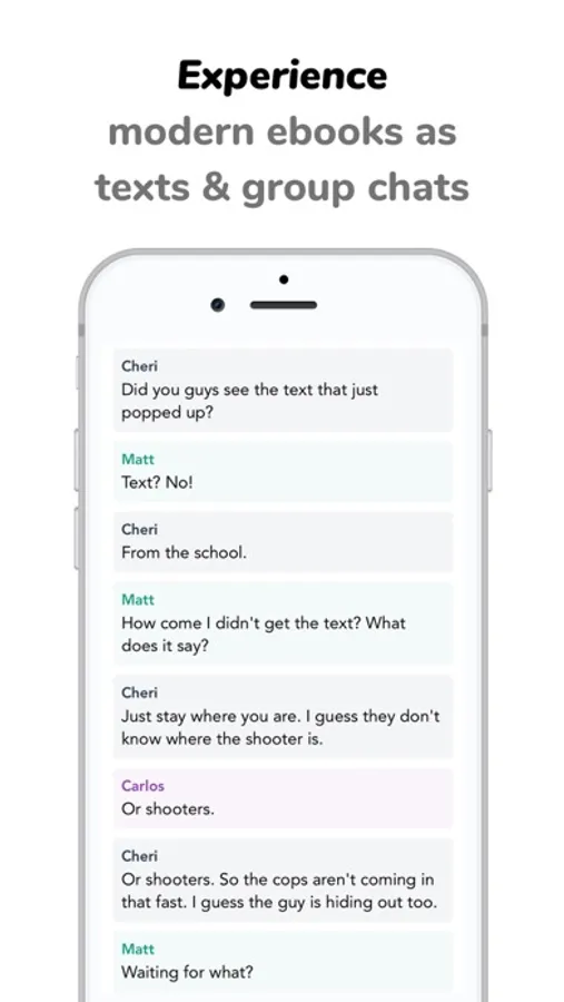 Texties is the modern ebook. Experience stories as text message conversations between characters. Writers: instantly publish & share engaging, rich stories!