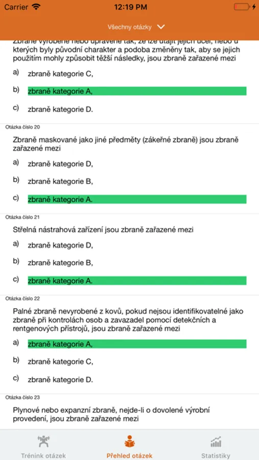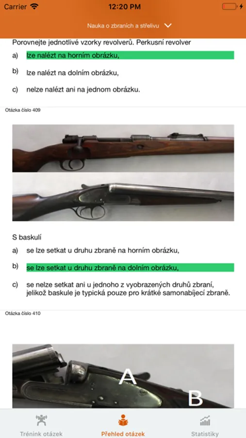 Sada aktuálních otázek pro přípravu ke zkouškám na získání zbrojního průkazu.