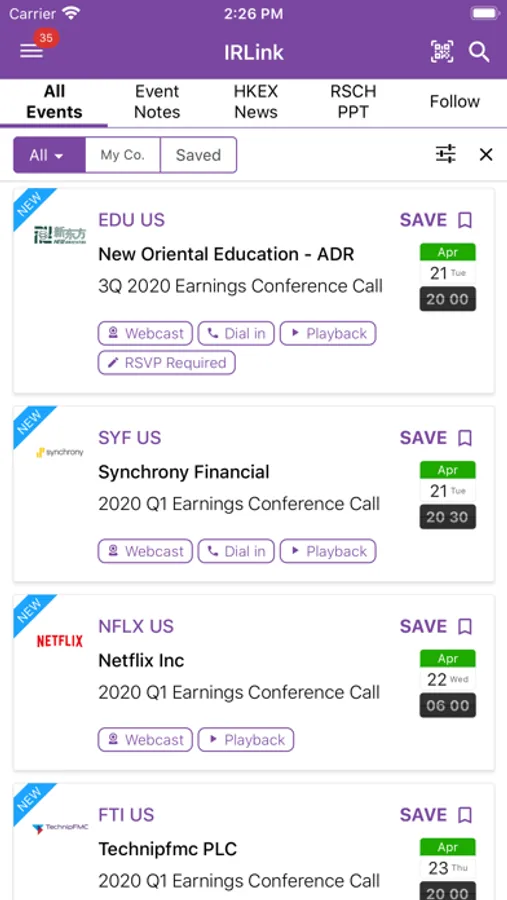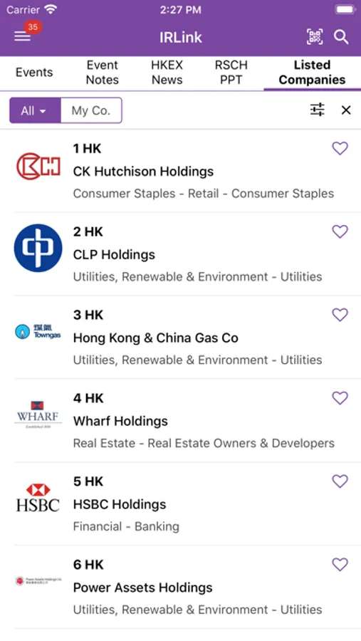 * Meetings and roadshows: track corporate events hosted by listed companies, brokers and PR firms easily in our centralized event database through easy filter settings. Receive alert when a company you follow has posted a new event. You won’t miss any important events.