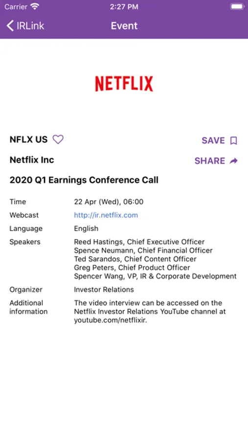 * Calendar management, instant booking and event check-in: save the desired events to your company email calendar instantly and easily; RSVP to events and get confirmation directly through IRLink. You can even check-in to events by scanning QR code from the APP, which also gives you permanent access to exclusive digital copy of the event PPT. It doesn’t get any easier than this.