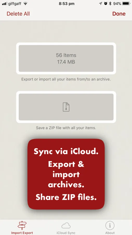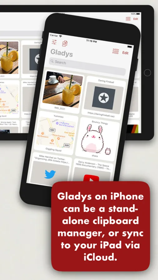 • Power users can use Gladys' data mirroring to view/edit items in-place from other apps, as well as exporting all items in a ZIP file for sharing.