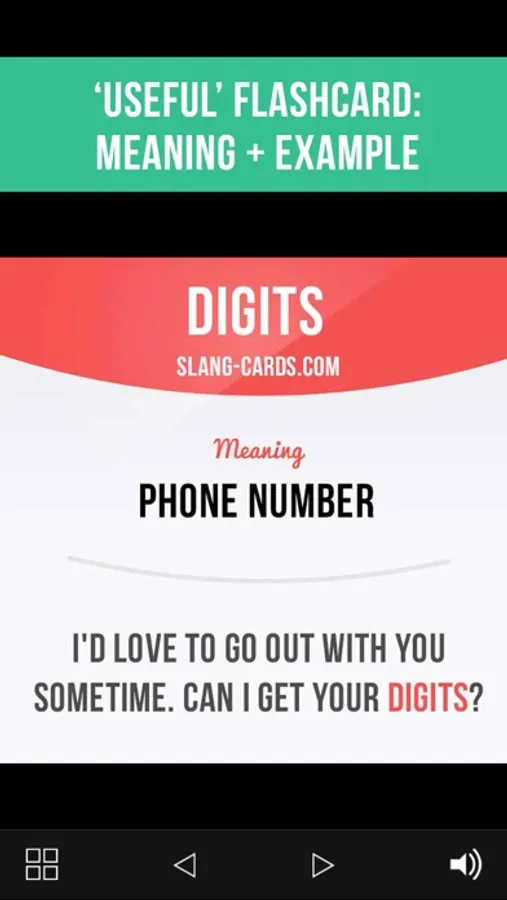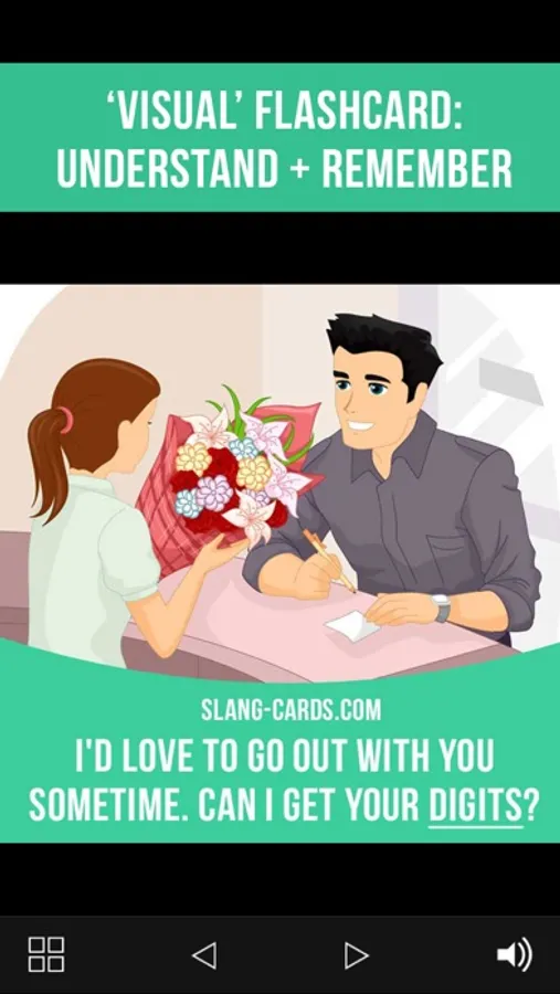 In our app you will find flashcards containing slang words, example sentences, pictures and correct pronunciation.