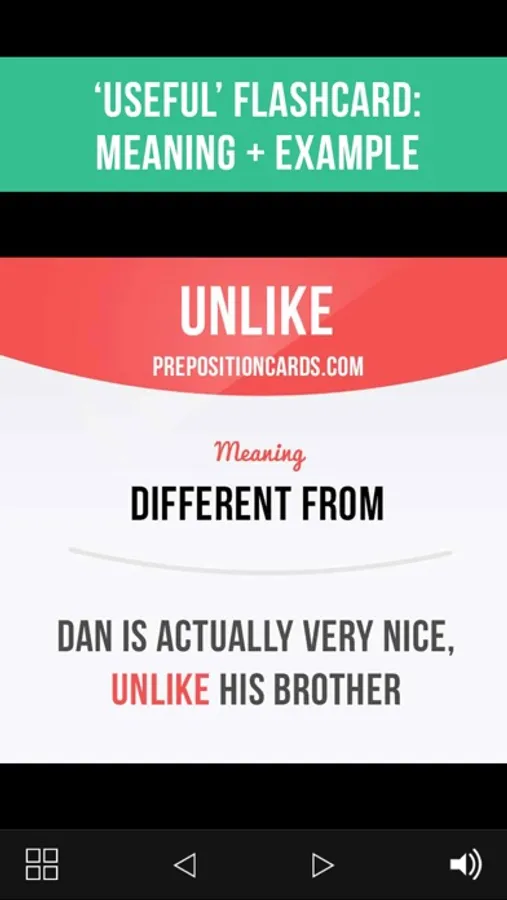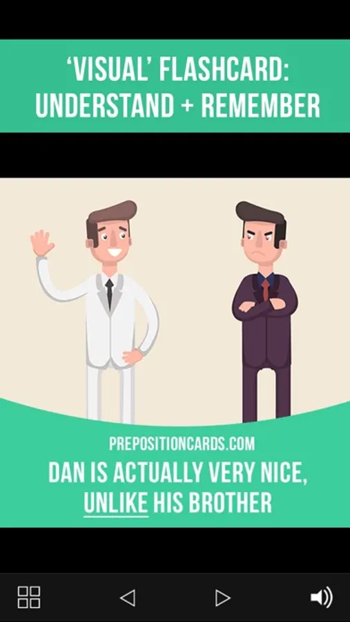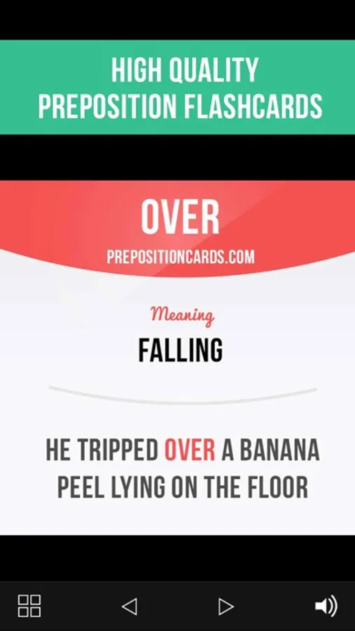 In our app you can find flashcards containing English prepositions, example sentences, pictures and correct pronunciation.