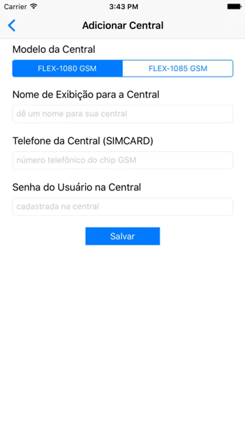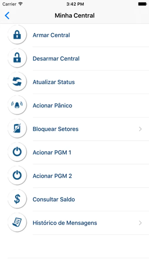 Facilita o envio dos comandos SMS para a central de alarme.