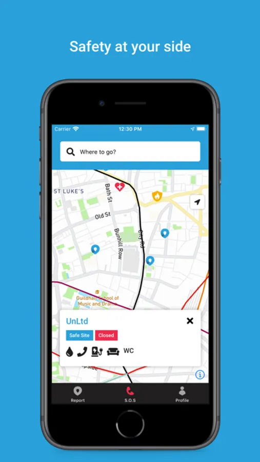 Quickly reach Emergency Services and know the nearest Safe Site, like the friendly local shop or closest hospital.