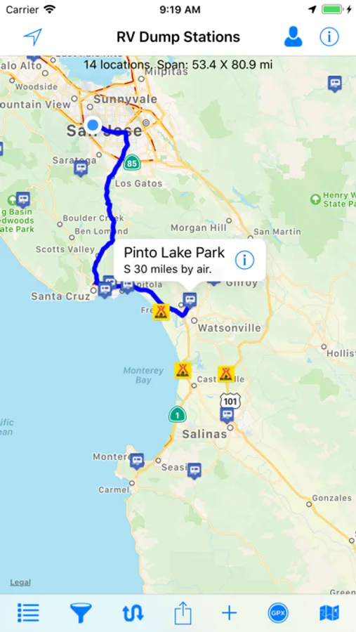 - Import routes from GPX files. This makes it much easier to find RV dump stations along a route you've created in another app such as Road Trip Planner.
