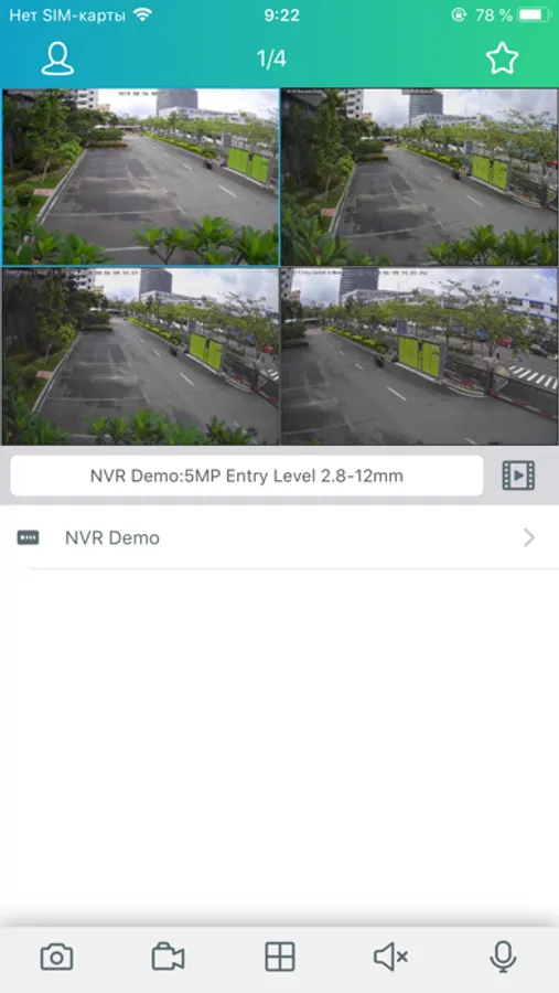 • Доступ к живому видео в режиме одной или нескольких камер на экране