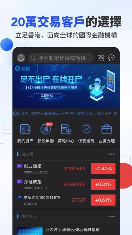 选择海通国际APP,就是选择了智能、专业、自由、可信的投资方式。你的智慧与财富,从此刻起与世界接轨,随岁月增值。