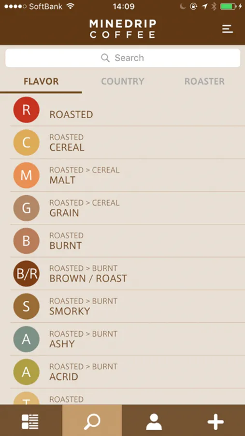 The app allows you to record your coffee tasting result using a flavor wheel.