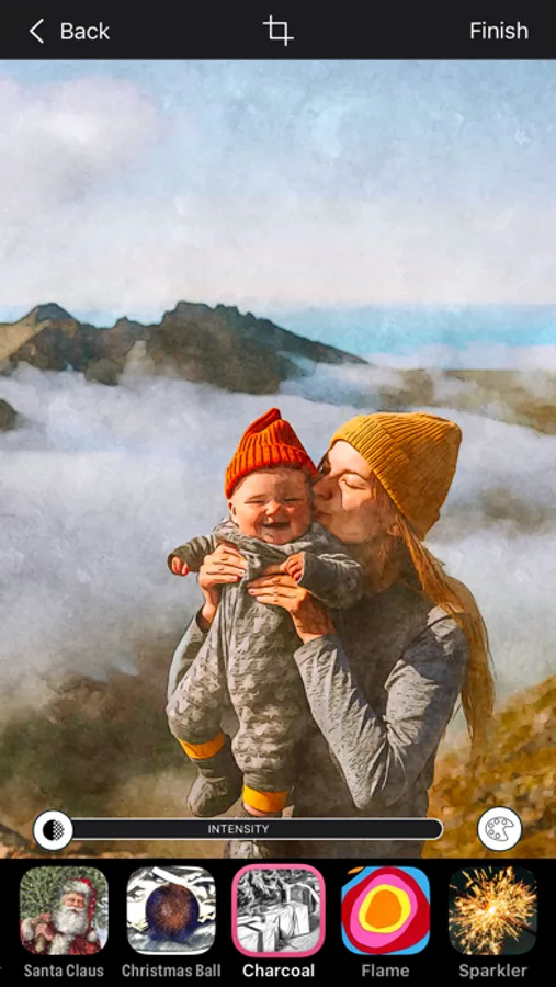 - Change the intensity of the photo effect and/or enable/disable the color transfer