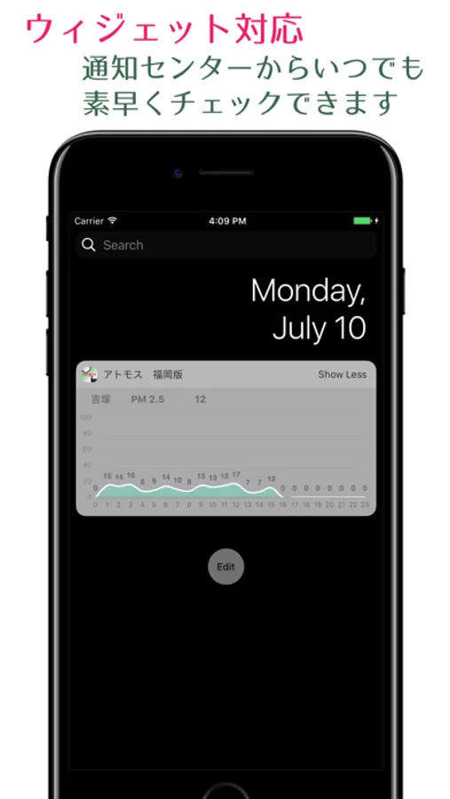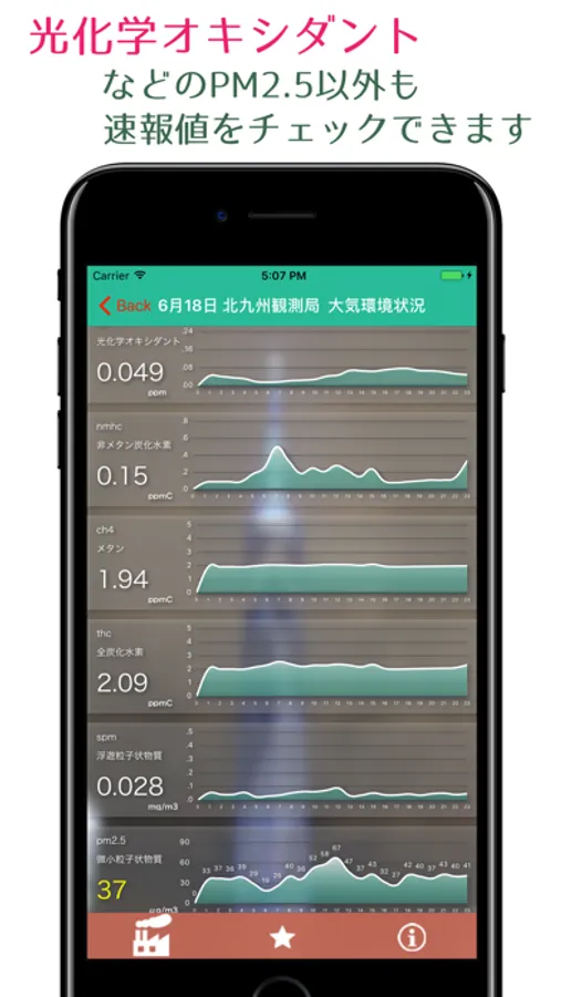 速報値は毎時更新! グラフやウィジェットで手軽に確認でき、基準値を越えた時はPush通知でお知らせします。