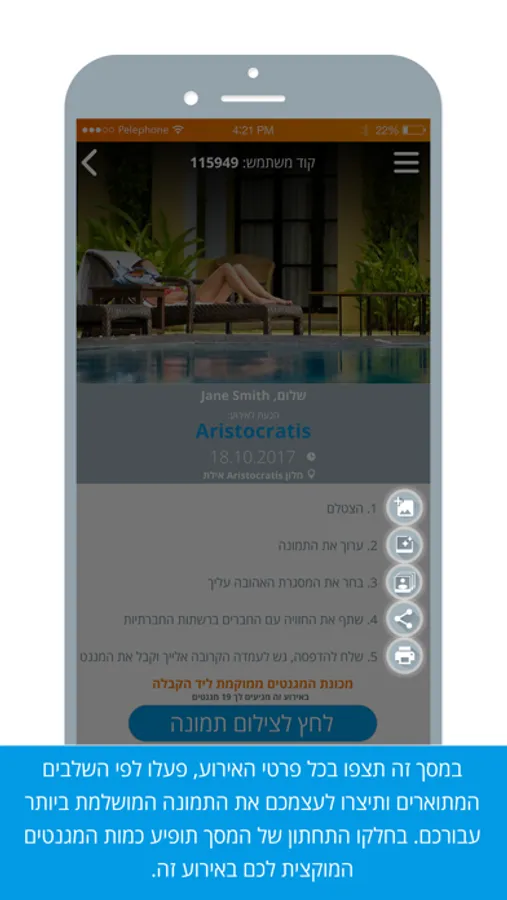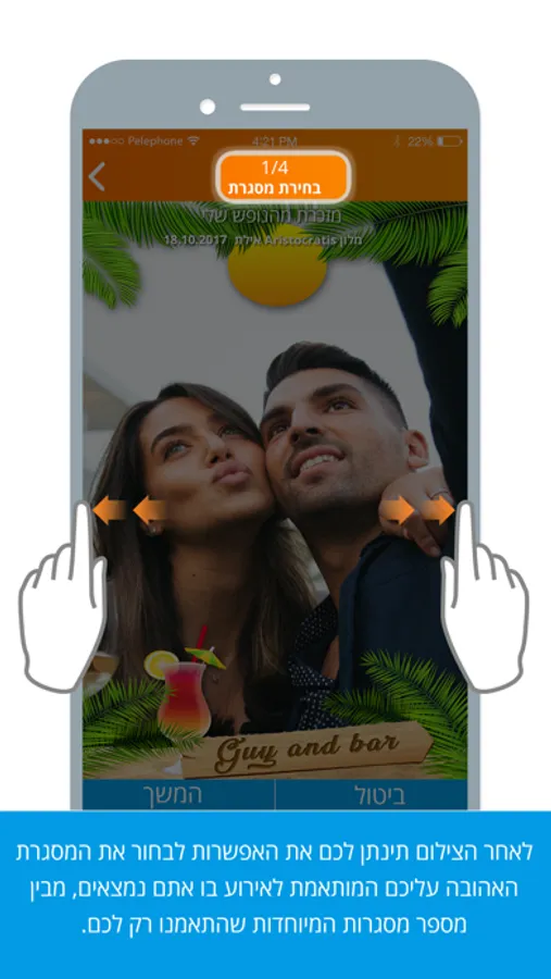 בכל אירוע מרגש אליו אנו מגיעים, אנו מבלים זמן לא מבוטל עם מצלמת הפלאפון כדי שנצליח לשמור לעצמנו תמונות מהרגעים השמחים באמת בחיים. סלפי מסייעת לכם למקסם את חווית הצילום ולקבל את המזכרת המקורית, האישית והייחודית ביותר מהאירוע!