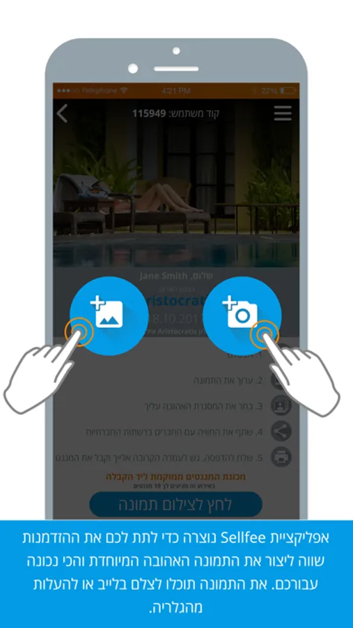 כולנו היינו מעוניינים שצלם המגנטים ירדוף אחרינו ויצלם אותו ברגעים שאנו נבחר, בפוזות האהובות עלינו וברגעים הכי מרגשים. בכל זאת, רק אנחנו יודעים אילו רגעים היינו רוצים לנצור מכל אירוע ואירוע. בדיוק לשם המטרה הזו פיתחנו את סלפי, האפליקציה שמאפשרת לכם להפוך לצלמים ולקבל תמונה מעוצבת וערוכה, כזו שנבחרה על ידכם ללא בזבוז זמן מיותר ובקלות!