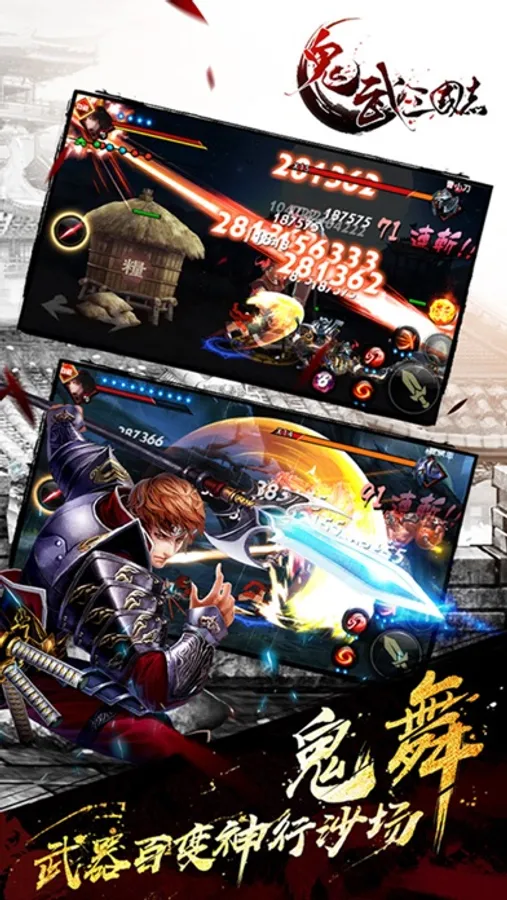 鬼武三国志是国内知名动作游戏厂商蜜獾工坊研制的经典横版动作手游,玩家可在战斗中自由切换武器,释放宠物技能,技能无CD,并可积攒怒气释放鬼武大招,战斗画面绚丽无匹,无双割草弹幕洗地。在游戏初期,玩家通过闯关熟悉游戏操作,逐渐接触组队战斗,实战竞技,并可加入军团一起团战,并可单人跨服竞技,军团跨服联赛,以及小组跨服战。搜集各种神兵神器,最终纵横三国无敌于天下。
