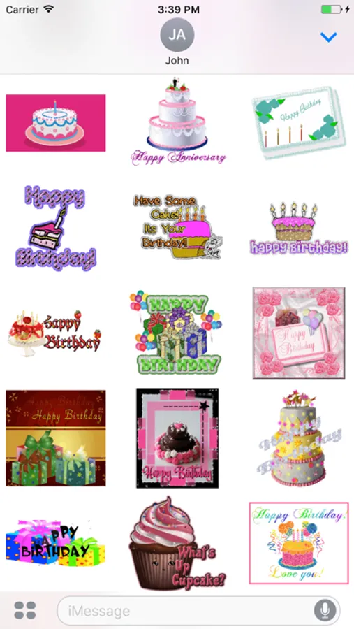 This app offers you a series of Birthday Cake stickers for your chat. Get amazing animated Birthday Cake stickers for iMessage on iOS phone and share the stickers on Facebook, Whatsapp, Messenger and many more social networks.