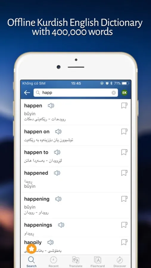 Kurdish English Dictionary and Translator is a comprehensive and innovative application for iPod / iPhone / iPod with easy-to-use interface, quality content and advanced search functionality. With 400,000 words and vocabulary games, this is ideal dictionary for those who need a comprehensive dictionary to study, work, travel or use at home! Learning English and learning Kurdish are easier than ever!