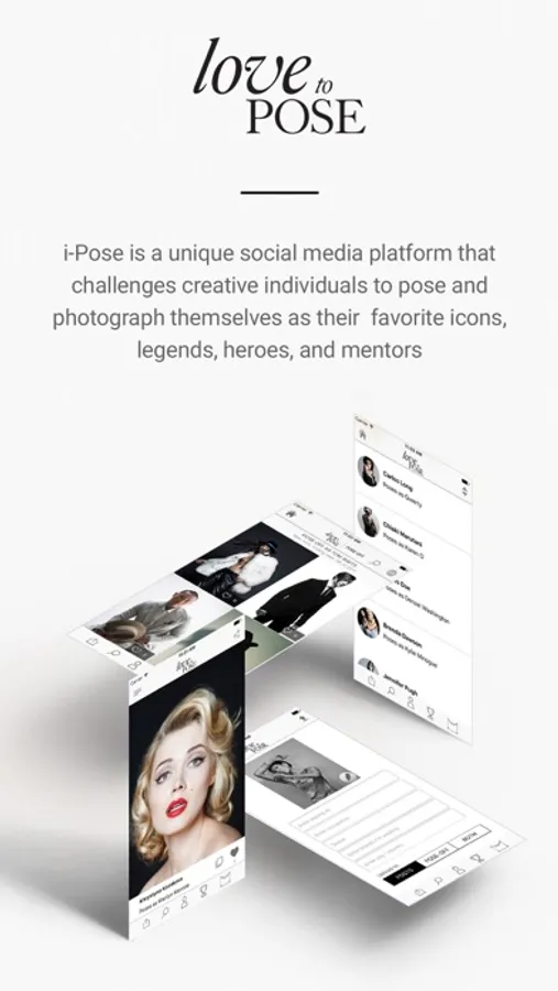 i-Pose is a unique social media platform that challenges creative individuals to pose and photograph themselves as their favorite icons, legends, heroes, and mentors. Conceived by the iconic SOMA Magazine, each i-Pose image tells two stories—one of the person posing (the subject) and one of the idol being emulated (the icon). Whether the photos are shot with an expensive camera or an iPhone, i-Pose seeks to discover, curate, and showcase future creative leaders from all over the world as they emulate the artists, musicians, actors, photographers, and designers who inspire them. Graded by the iPose community, the i-Pose users with the best photos will be selected to participate in a “Pose-Off” competition, where a panel of renowned judges will announce the top ten winning photographs every month.