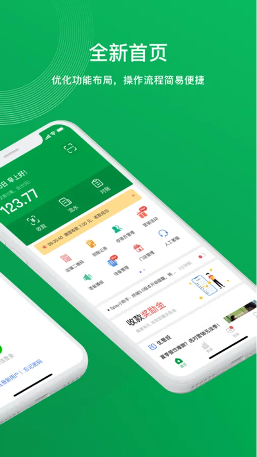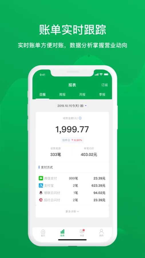 【收款】商户可快速开通多种移动支付收单方式,支持消费者扫码支付、刷卡支付,收款便捷;
