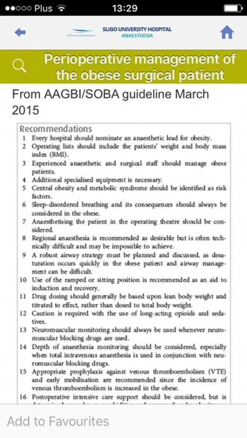 This application is designed for the Anaesthetic doctors in Sligo University Hospital. The app content is maintained by and for the Department of Anaesthesia in the Sligo University Hospital. It provides immediate point-of-care access to up-to-date, local, national and international guidelines in clinical scenarios like: