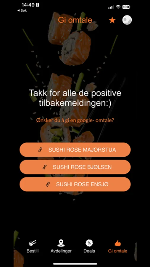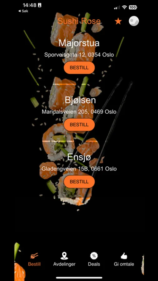 Last ned gratis app fra Sushi Rose og motta kundefordeler.