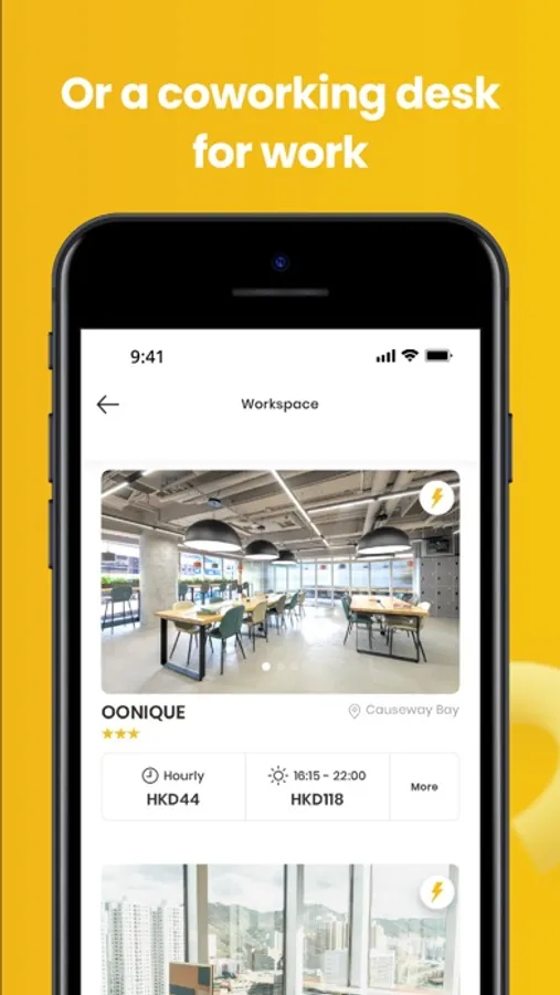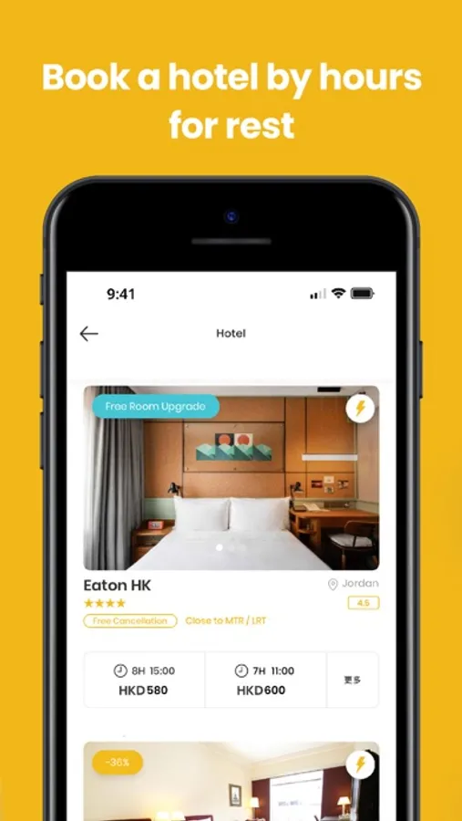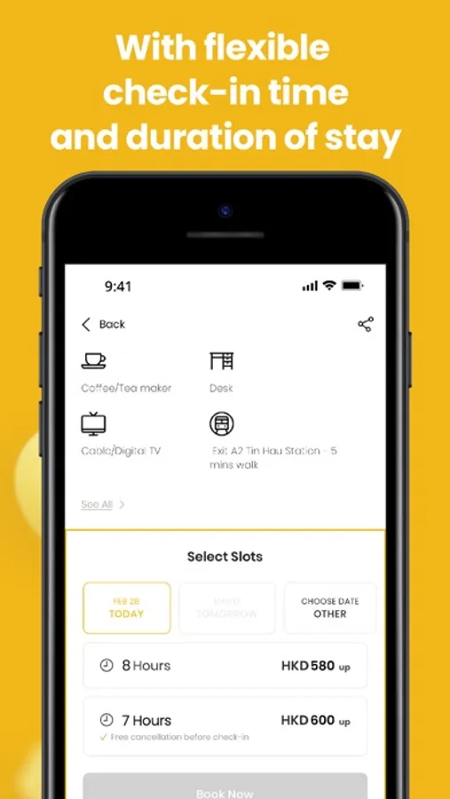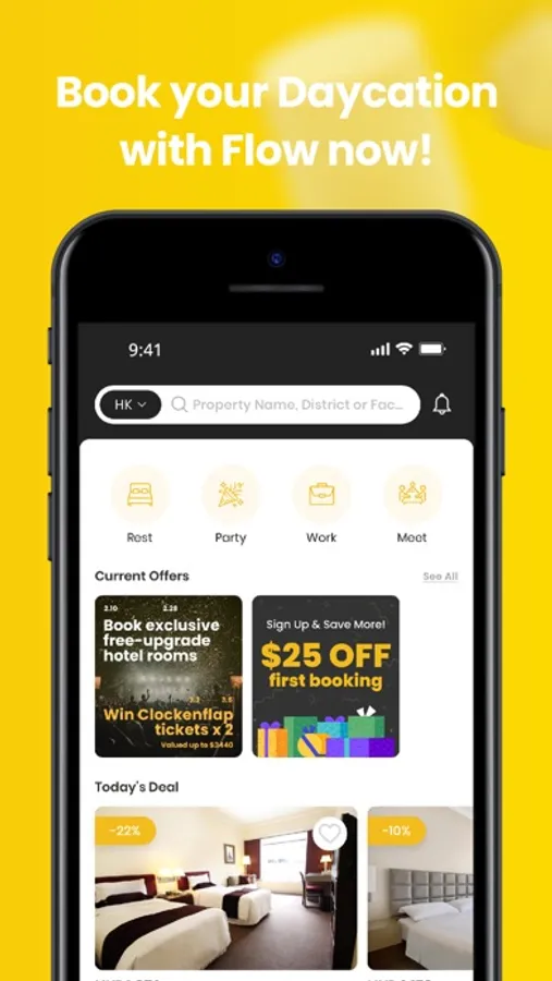 With Flow App, you can book a hotel room or work desk with flexible check-in time and duration from 1 to 12 hours. You can save up to 75% off the regular full-day booking prices. Our partners include 3 to 5 star hotels as well as stylish co-working spaces. You can enjoy all the amenities on the premise as well.