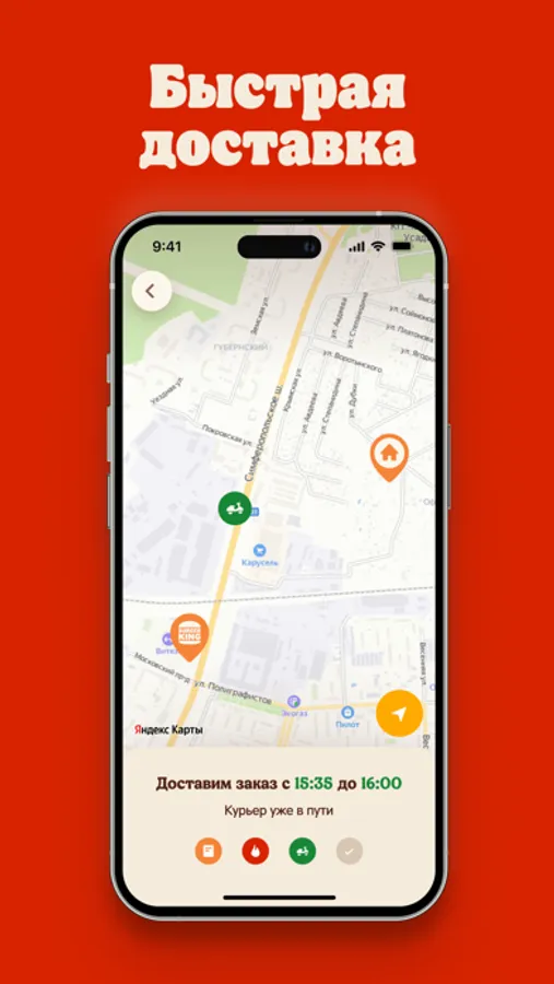 • Не ждите долго свою еду - быстрая доставка в течение 30 минут.