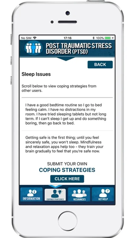 PTSD hub is an interactive community that allows people struggling with PTSD to share their coping strategies and to help manage the symptoms.