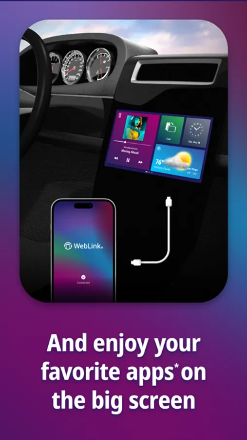 WebLink upgrades your in-vehicle screen into a modern, connected infotainment system allowing you to safely and easily enjoy your favorite smartphone apps on the go.