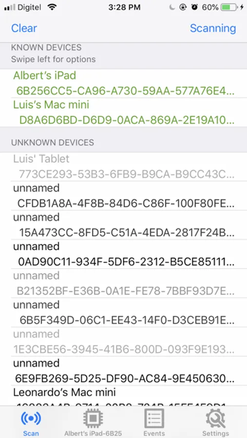 General BLE events are logged as well as individual devices events, they can be exported in CSV format.