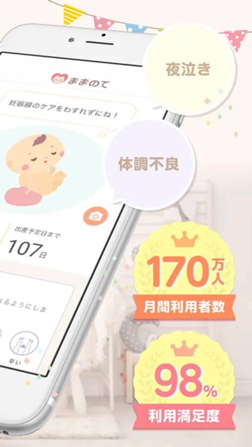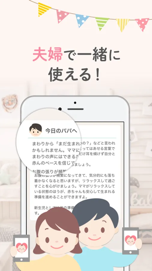 妊娠中から出産後まで1つのアプリでママとパパをしっかりサポートします。