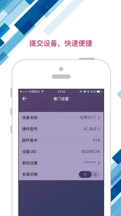 该应用是一款可以控制卷帘门,如开门、关门、锁门、设置密码等的卷帘门电机手机遥控软件。相当于一款APP智能手机蓝牙控制器,使普通的卷帘门电机变智能点击,让你的手机变成遥控。并且支持多元化控制,即遥控开门和手机APP开门。