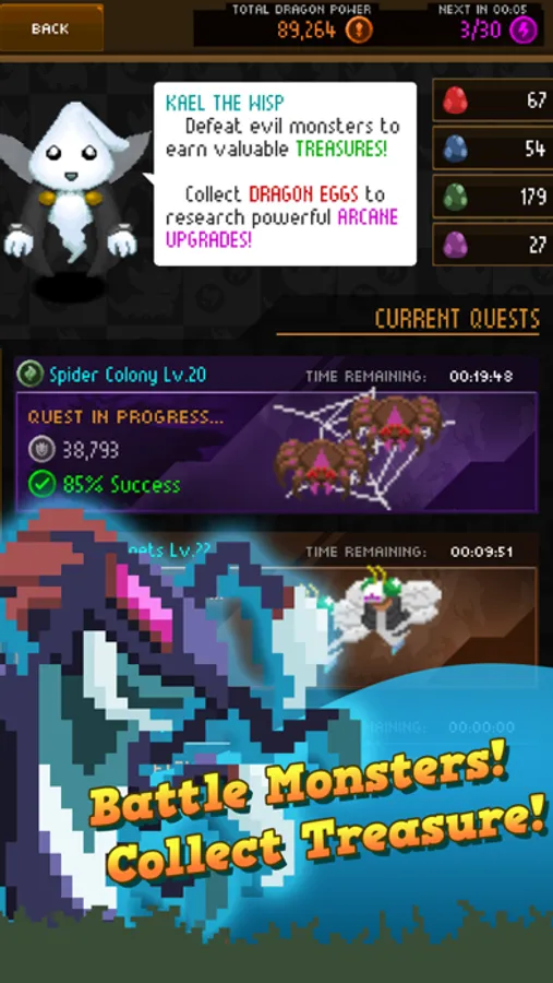 Dragons need mana to survive. As the Dragon Keeper, it's your job to feed your dragons mana! Tap on the screen to collect mana. Once you collect enough mana, you can summon dragons that collect more mana for you. Level up your dragons to unlock more upgrades and increase your productivity! Expand your territory and unlock new areas to allow you to summon new dragons. And once you've established your horde of dragons, you can go on a quest! Battle evil monsters to collect magical Dragon Eggs and other rare artifacts!