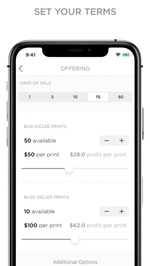 • You decide how many prints, how long a sale lasts and how much to charge.