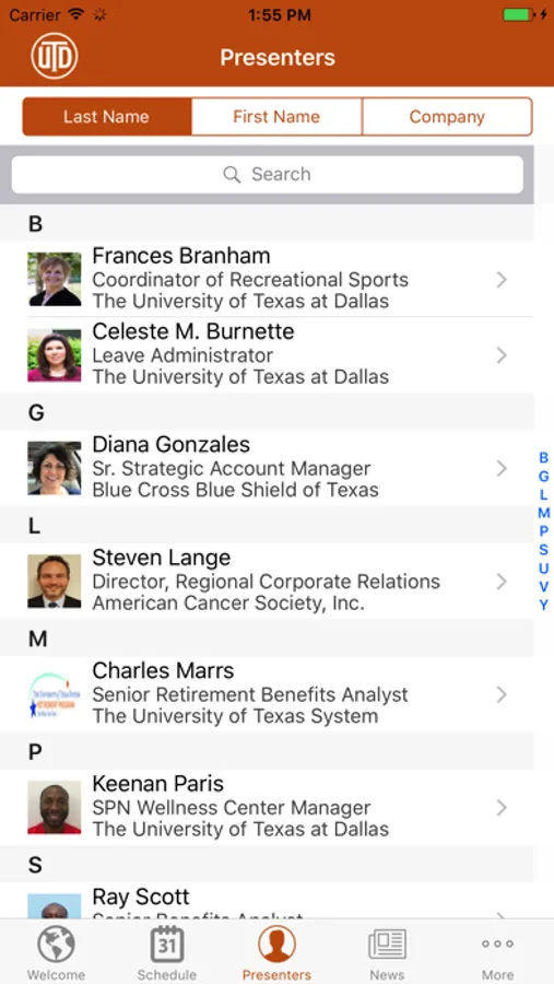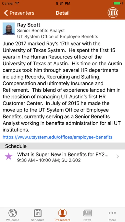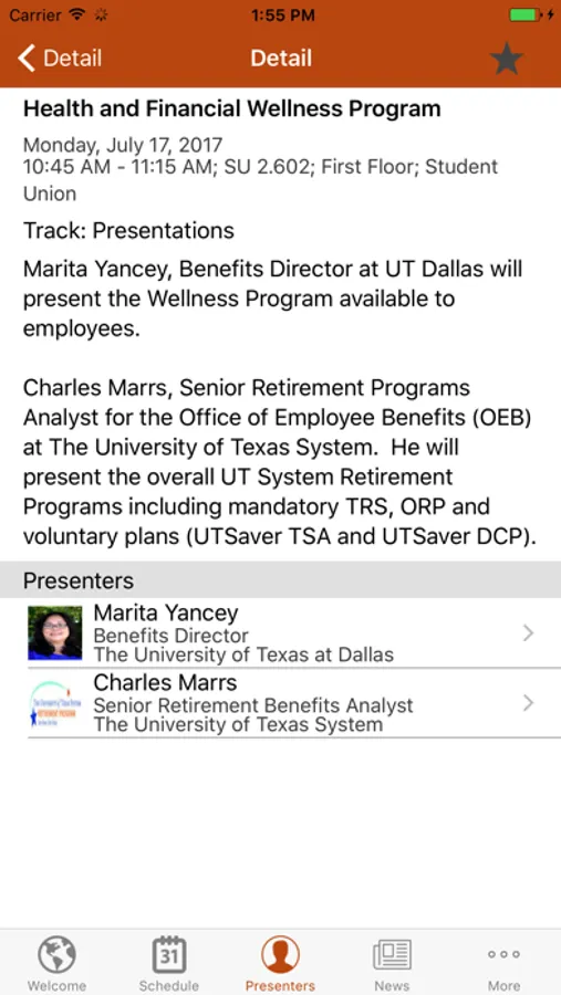 This app will give you access to your daily schedule of informative sessions. It contains a bio on each presenter and their sessions. News will also keep the user up-to-date on current events of the benefits fair.